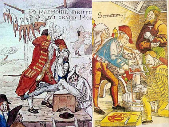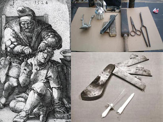 Desde tiempos medievales las ciudades contaron con personas que se dedicaban a sacar dientes y muelas a sus convecinos. Dicha tarea la ejecutaban los Barberos Flebotomianos, así llamados en España porque además de barbear y cortar pelos eran también sangradores: es decir, se encargaban de seccionar y sangrar la carne humana o aplicar sanguijuelas y ventosas a las personas para aliviar, de acuerdo con la mentalidad de la época, los malos humores y enfermedades.