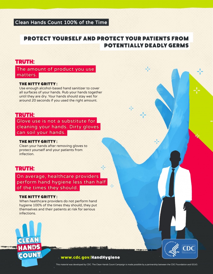 The Centers for Disease Control and Prevention (CDC) ha desarrollado una campaña para resaltar la importancia de este simple procedimiento, llamada la Clean Hands Count campaing. "Los pacientes depende del equipo de médicos u odontólogos para mejorar, y el primer paso en hacer esto posible es asegurarnos que los profesionales de la salud no los estén exponiendo a ellos a nuevas infecciones," dice el Director del CDC Tom Frieden. "La limpieza de las manos es importante y en algunos casos puede ser un asunto de vida o muerte."
