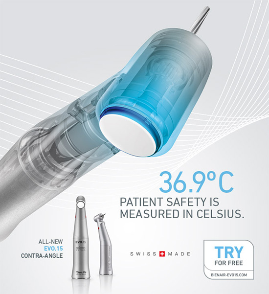 En respuesta a muchas quejas públicas realizadas en relación a quemaduras ocasionadas por piezas de mano eléctricas, la compañía tecnológica Bien-Air Dental S.A. desarrolló EVO 15, el más seguro contra-ángulo y pieza de mano en el mercado hoy en día.
