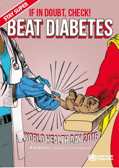 Poster OMS contra la diabetesLa OME ofrece material promocional como posters y un quiz online para ayudar a promover esta conciencia. Además, está promoviendo material educativo para fomentar la conversación entre el paciente y el profesional sobre este tema.