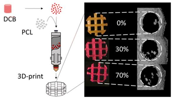 Los investigadores han desarrollado un material de composite que combina la fuerza y posibilidad de impresión del plástico con la información biológica del hueso natural. Ellos comenzaron con prolicaprolactona (PCL), el cual es un poliéster biodegradable que ha sido aprobado por la Food and Drug Administration.