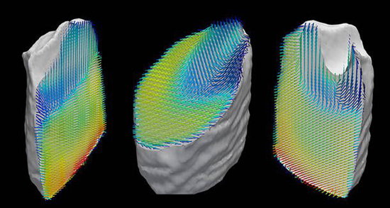 Todo esto permite por medio de la combinación de la información en 3-D obtenida de los rayos X dispersados en la TC, los investigadores son capaces de ver claramente en una orientación 3-D las fibras colágenas de un diente humano. Para ello, 1.4 millones de imágenes dispersas fueron tomadas y procesadas usando un algoritmo especialmente desarrollado que permitió la completa reconstrucción de la estructura.