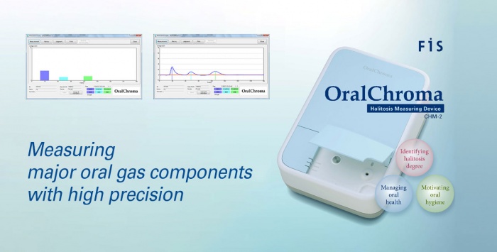 "El OralChroma es un gas cromatrófago. El único en su clase actualmente en el mercado," dice Val Di Giovanni, P Eng, que ha estado en el la industria del uso de gas como sensor por 25 años y es ahora el consultor técnico de Nissha USA. "Este dispositivo tomará una muestra simple de aliento, la analizará y presentará que niveles de los 3 componentes mayores de la halitosis existen en la muestra.