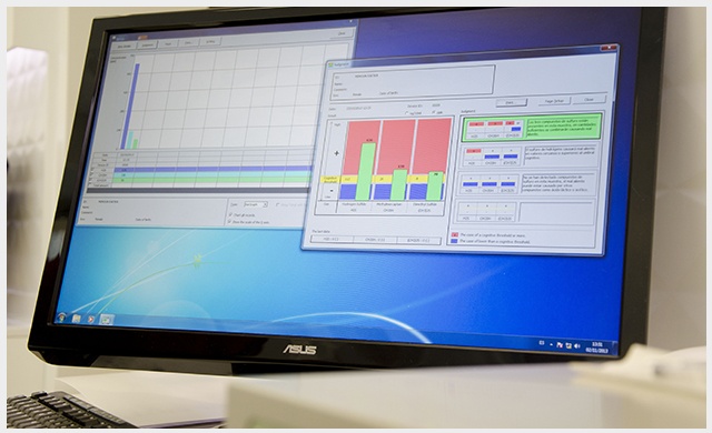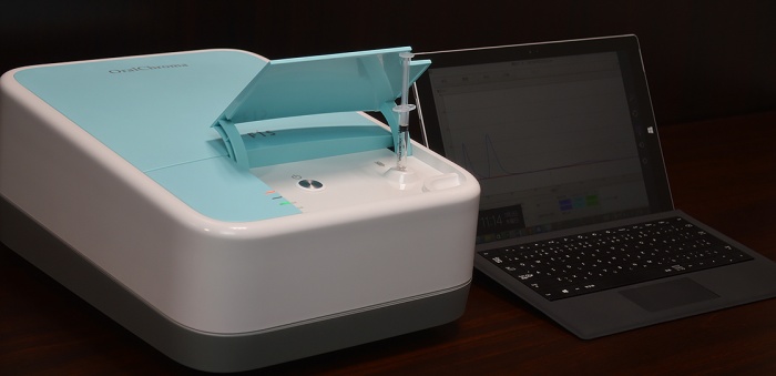 El paciente simplemente sopla dentro de una pequeña jeringa, luego el odontólogo la introduce dentro del OralChroma, el cual analiza la muestra. Dentro de 4 min, el OralChroma mide los niveles de los componentes presentes y envía los resultados a través de computadora a su propio software de control.