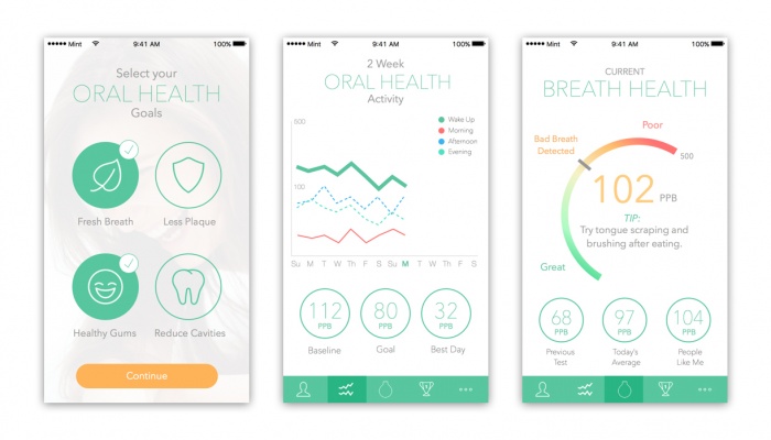 Mint es un gadget desarrollado por la start up Breathometer, que además de informar sobre tu aliento, puede decirte el nivel de hidratación de tu cuerpo o si padeces algún problema, como asma o diabetes. Es un dispositivo inalámbrico compacto que funciona con Smartphone para ayudar a entender y mejorar la salud bucal de sus usuarios. A través de una serie de sensores muy sofisticados, Mint puede detectar las señales de las bacterias dañinas e informar con precisión a través de la app.