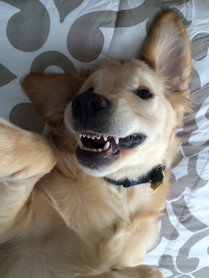 Wesley, un golden retriever cuya dueña, Molly Moore observó con preocupación el grado de malposición dental que presentaba, esto, no le permitía cerrar el hocico y alimentarse correctamente. Por lo cual ella y un ortodoncista de mascotas en Michigan decidieron que iniciar un tratamiento ortodóntico era la solución adecuada. Pero no por motivos estéticos, sino por razones de salud, dice la página en Facebook del centro veterinario Harborfront Hospital for Animals.