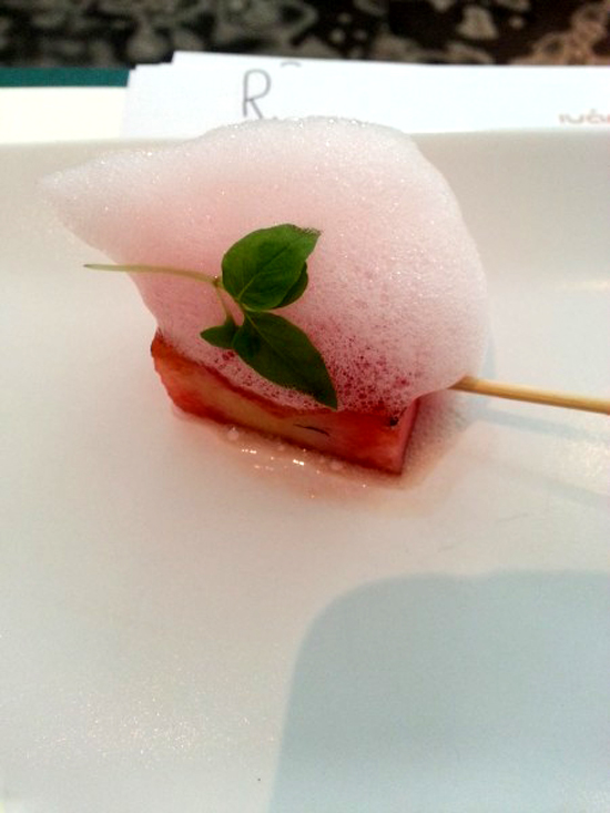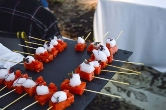 Se inició la jornada con un Bloody Mary de Fresa y Apio. En este refrescante combinado, se ha conseguido una sabrosa bebida en la que a las propiedades del apio funcionan limpiar la superficie del diente y refrescar el aliento, se suma la acción bactericida de xilitol presente en las fresas y su poder antioxidante, que ayuda a tener una encías rosadas. El resultado, una sonrisa limpia, fresca y juvenil.