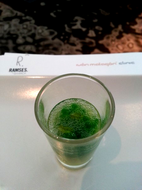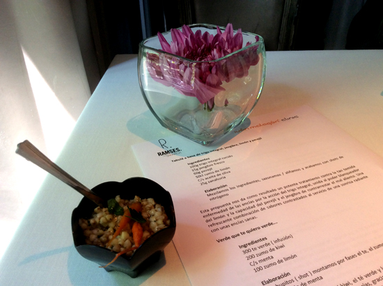 Sirvieron también unos Shots de kiwi, té verde y menta. Gracias a los polifenoles presentes en el té verde ayuda a combatir la enfermedad de las encías y del mal aliento, además está presente el efecto refrescante de la menta y el kiwi, limpia la superficie del diente.