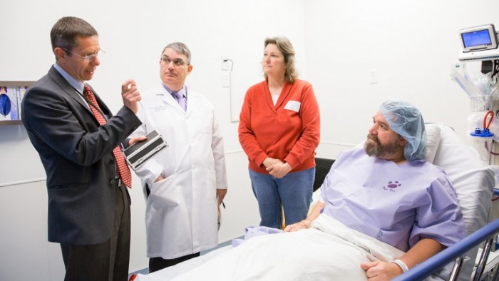 El paciente, George Kocelj, perdió la mayoría de su pierna derecha debido a un raro tumor nervioso causado por una neurofibromatosis. El paciente de 54 años utilizó por varios años una prótesis externa que finalmente ocasionaba más incomodidad que una correcta función, por lo que se resignó a permanecer en silla de ruedas.